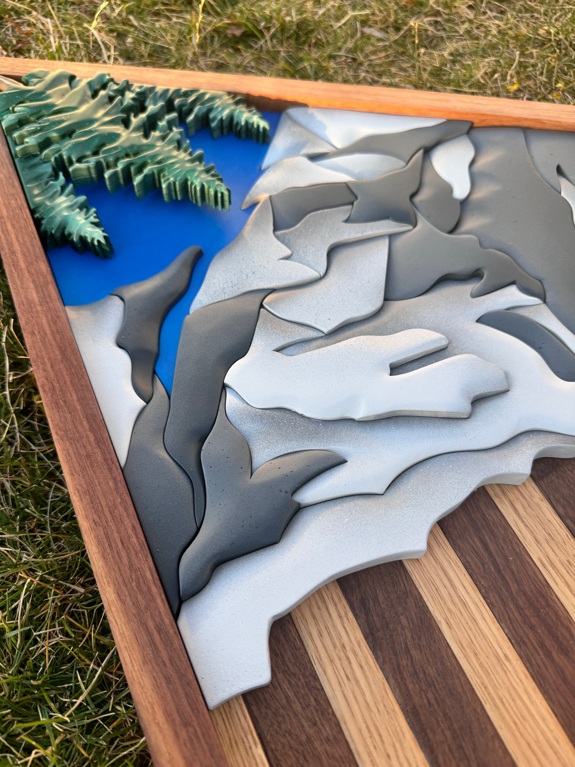 My favorite piece. Incapsulates my favorite part of the mountain. Mountains themselves, river and pine tress.